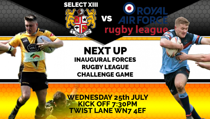 Leigh Miners Rangers is proud to play host to an armed forces challenge match on Wednesday 25th July (7.30pm) as the home club ‘Select XIII’ faces a Royal Air Force XIII in a friendly fixture. Rugby league as a sport is second to none in its relationship with the armed forces representative teams and Miners have a particularly close link to the air force with former players Garry Dunn and Steve Cooper having represented the club and the service with distinction. Garry has been instrumental in putting the wheels in motion for this fixture, which will see the RAF recruitment team from Liverpool and the Leigh branches of the air cadets and RAF veterans in attendance on the evening along with local dignitaries including Jo Platt MP, the Mayor of Wigan Borough and Lord Smith of Leigh attending as honoured guests. The club will also be supporting the RAF benevolent fund on the evening with proceeds from the raffle.