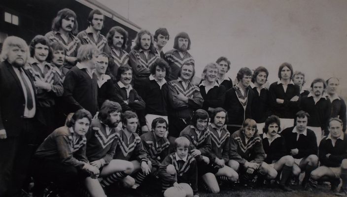 …An Uneasy Truce. Whomever suggested staging this 1970s joint team photograph of Miners and Latchford Albion was taking their life in their hands as these two clubs, who contested the inaugural National Cup Final in 1974, were bitter rivals throughout the decade. The photoshoot passed without incident, although castor-oil smiles, suspicious glances and general discomfort appear the order of the day, with only Rod Lewis and his Latchford counterpart standing centre seeming as though they genuinely enjoyed the experience.